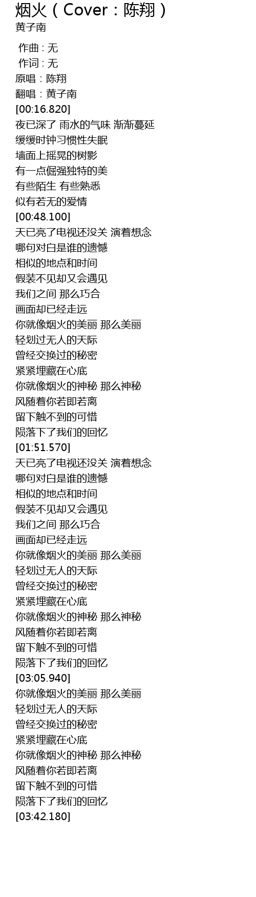 | [02:33.370] | 你就像烟火的美丽 那么美丽 |