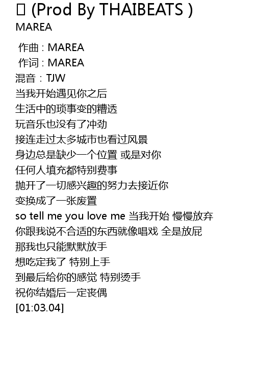 | [00:45.96] | so tell me you love me dang wo kai shi man man fang qi |