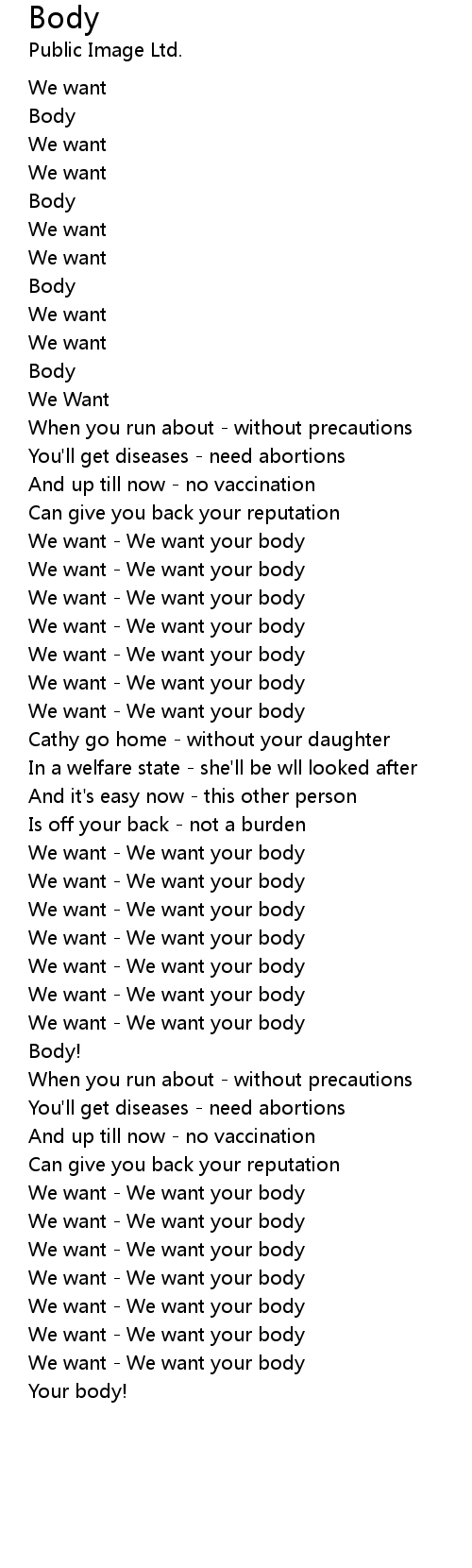 We want - We want your body |
