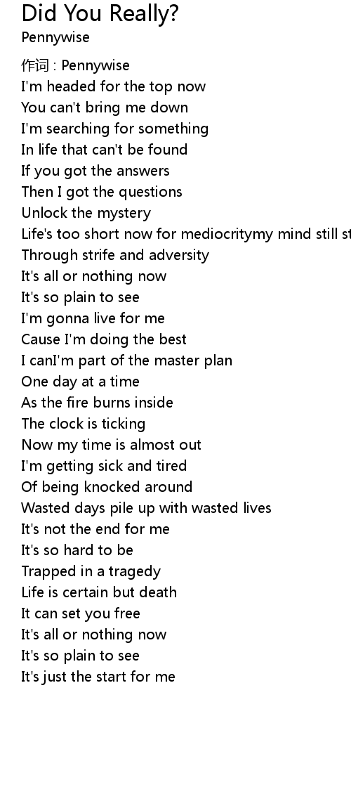 | 作词 : Pennywise | |