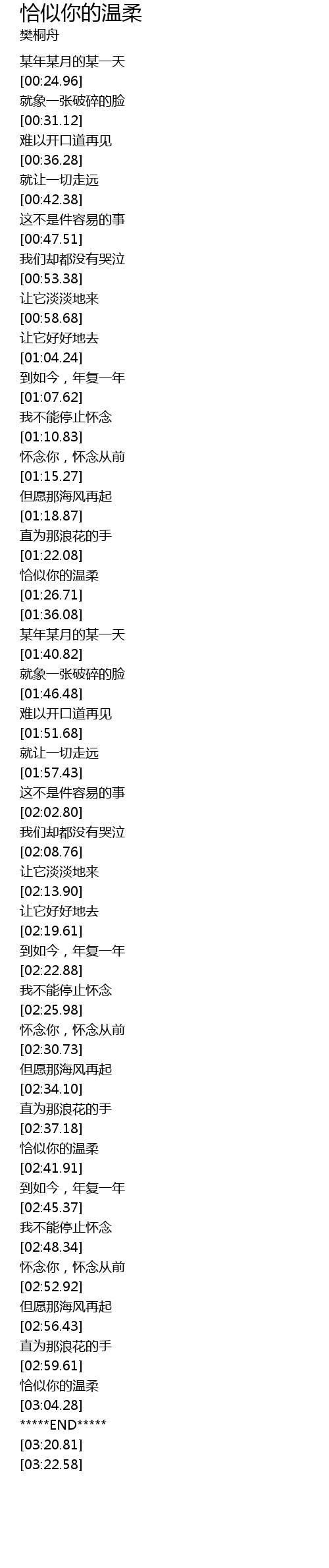 | [03:00.96] | qià sì nǐ de wēn róu |