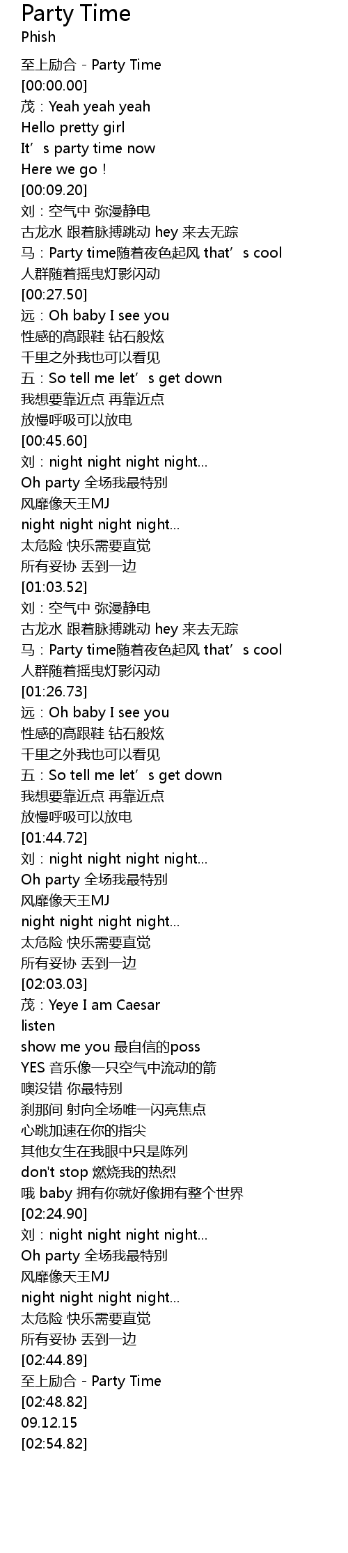 | [00:50.35] | Oh party 全场我最特别 |
