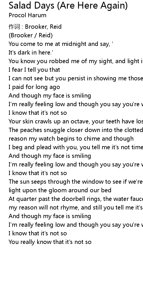 | At quarter past the doorbell rings, the water faucet drips and sings and still my reason will not rhyme, and still you tell me it's not time | |