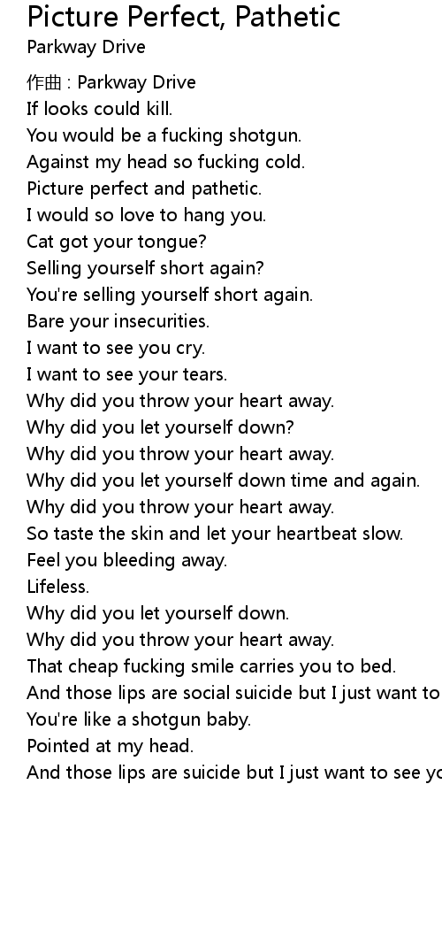 | Song | Picture Perfect, Pathetic |