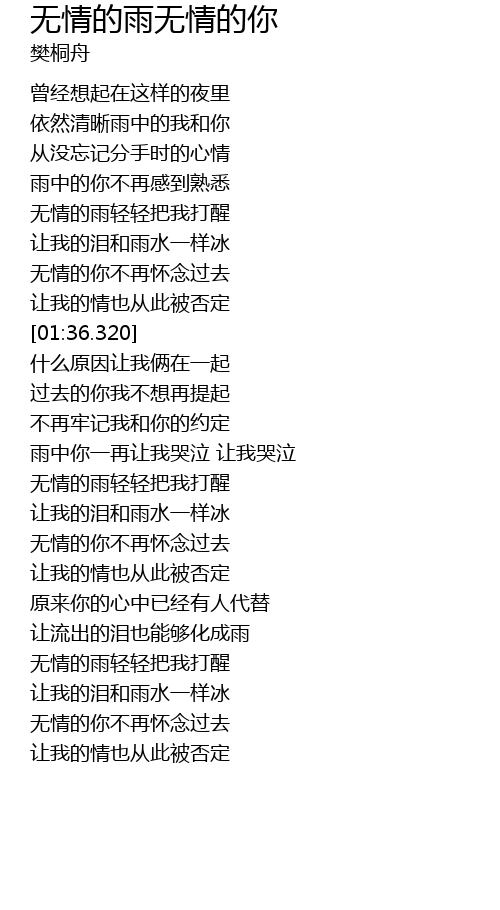 | [02:24.590] | 无情的雨轻轻把我打醒 |