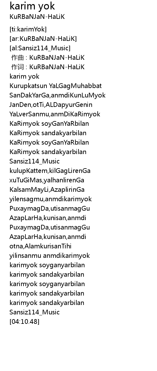 | [00:01.000] | 作词 : KuRBaNJaN-HaLiK |