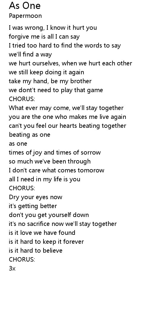 What ever may come, we'll stay together |