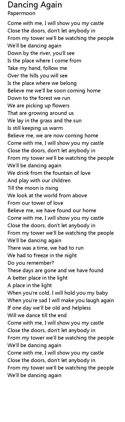 We'll be dancing again |
