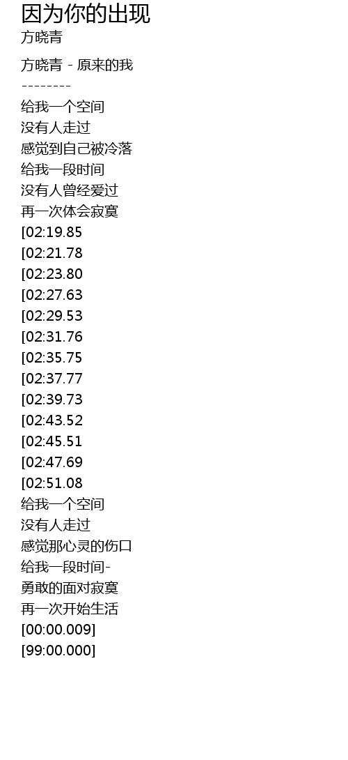 | [00:03.00] | fāng xiǎo qīng yuán lái de wǒ |