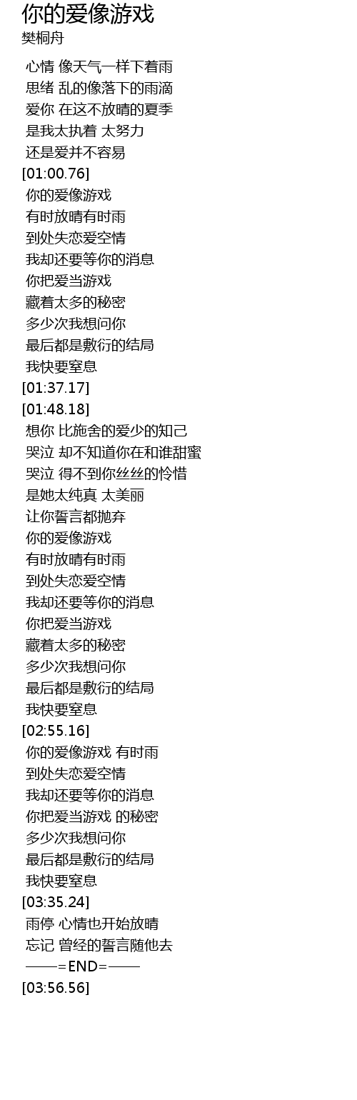 | [02:59.65] | 你的爱像游戏 有时雨 |