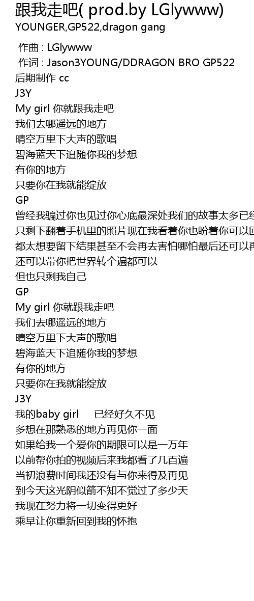 | [00:01.000] | zuò cí : Jason3YOUNG DDRAGON BRO GP522 |