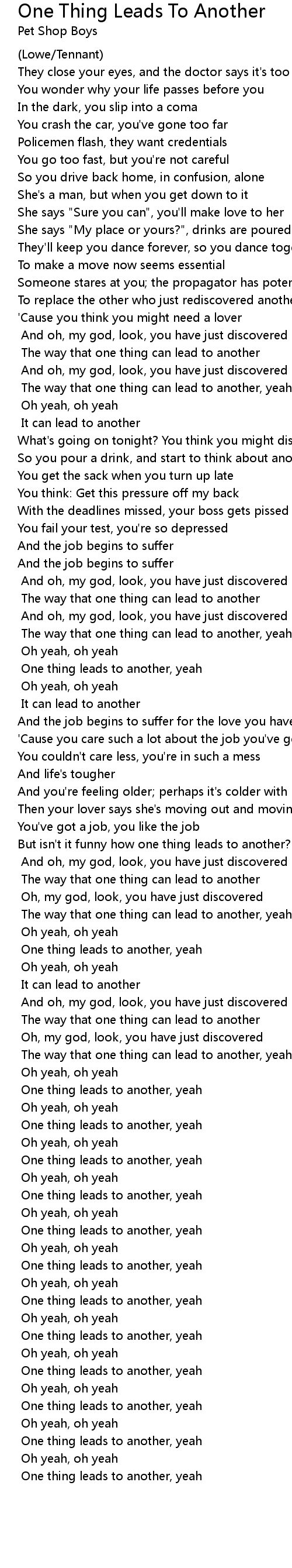 One thing leads to another, yeah |