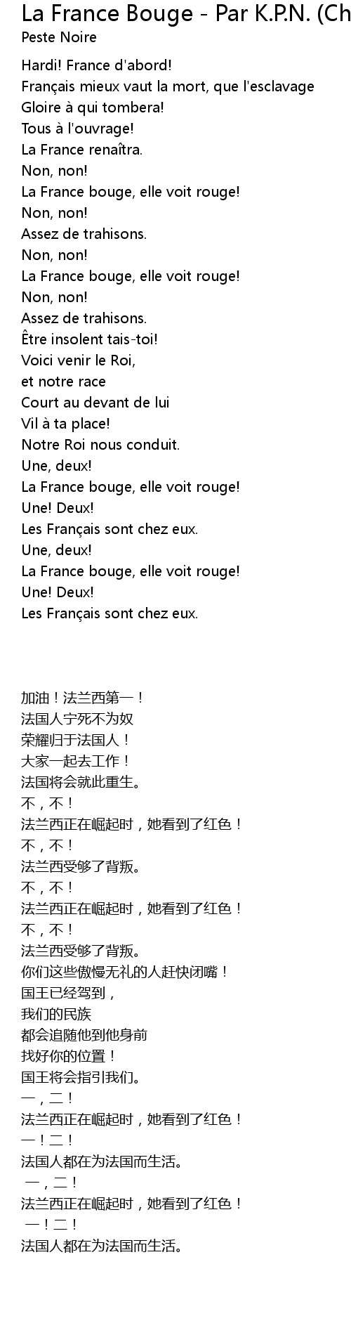 | Song | La France Bouge - Par K.P.N. (Chant de l'Action Française) |