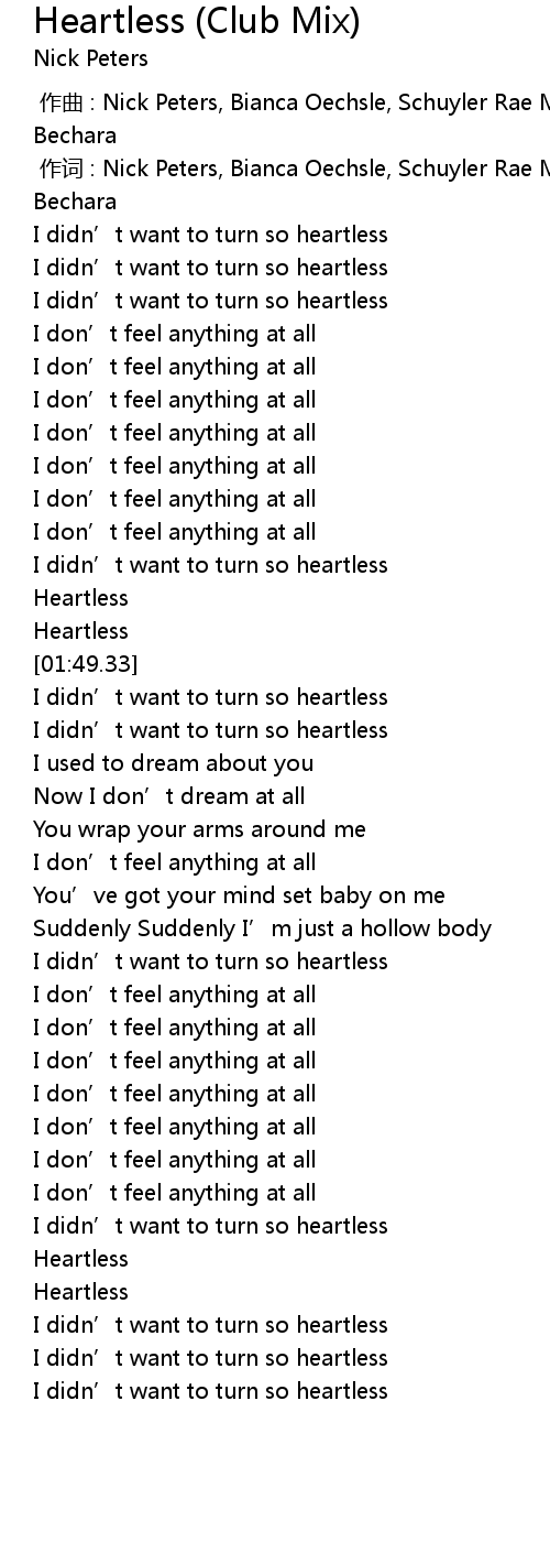 | [00:01.000] | 作词 : Nick Peters, Bianca Oechsle, Schuyler Rae Miller, George Bechara |
