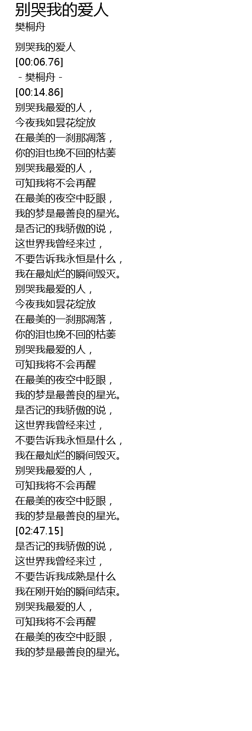 | [02:19.99] | bié kū wǒ zuì ài de rén, |