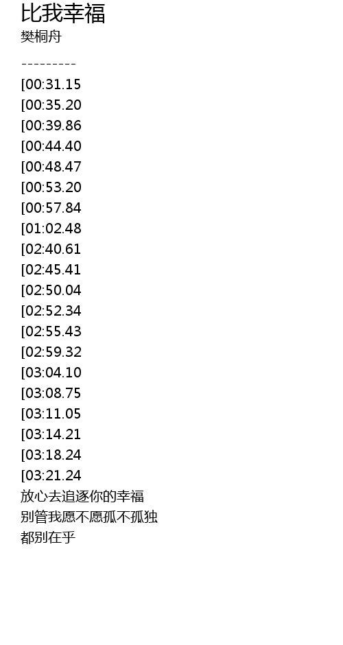 | [03:56.43][02:59.32][01:25.56] | qǐng jì de nǐ yào bǐ wǒ xìng fú |