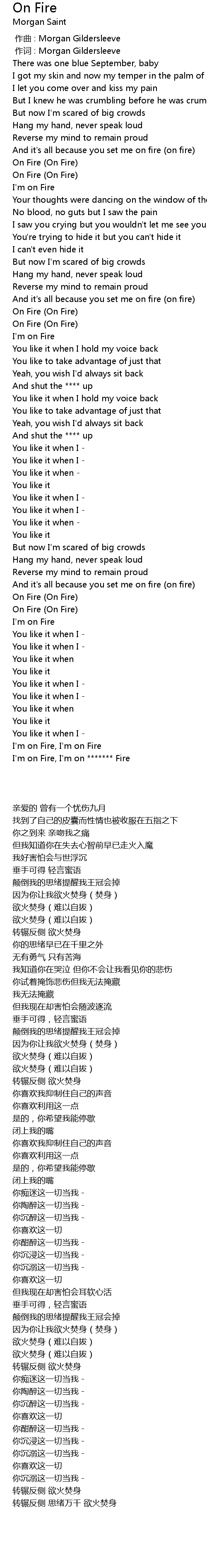| [00:43.58] | And it's all because you set me on fire (on fire) |
