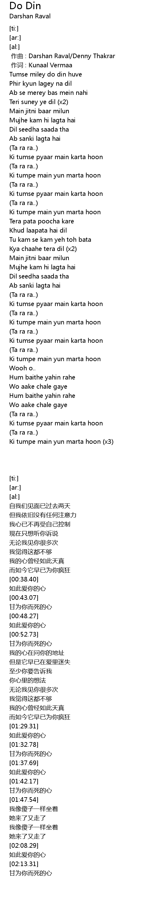 | [00:00.000] | 作曲 : Darshan Raval/Denny Thakrar |