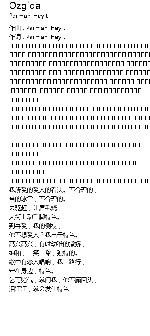 | مىنىڭ سۆيگەن يارىمنىڭ قاراشلىرى ئۆزگىچە، | |