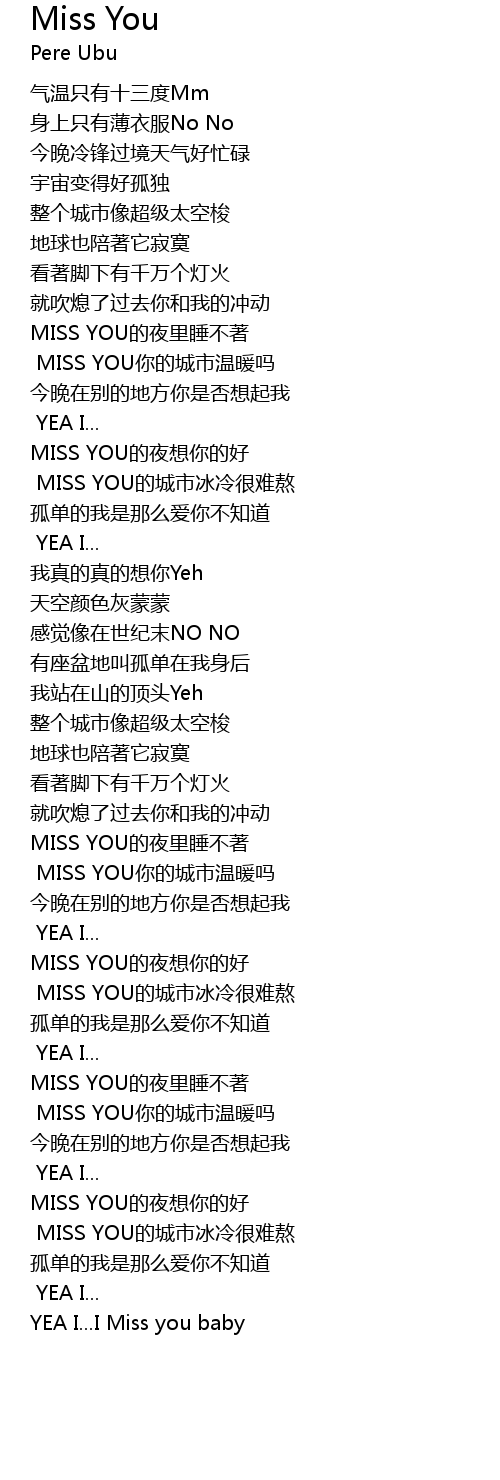 | [01:15.41] | MISS YOU de yè xiǎng nǐ de hǎo |