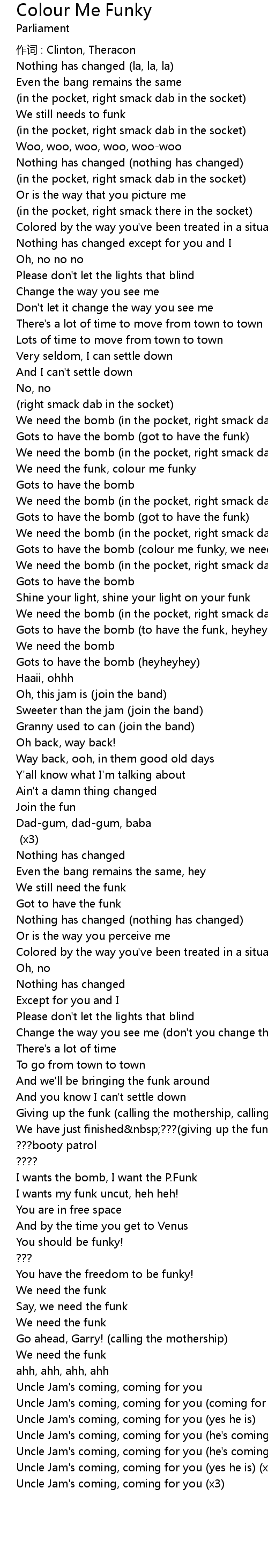 | I wants the bomb, I want the P. Funk | |
