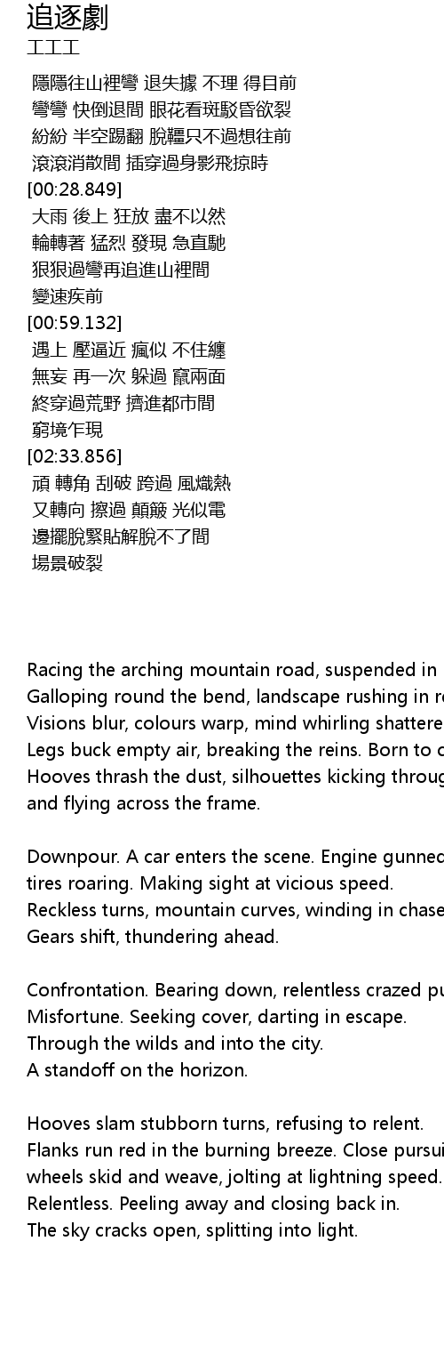 | [02:40.056] | 又轉向 擦過 顛簸 光似電 |
