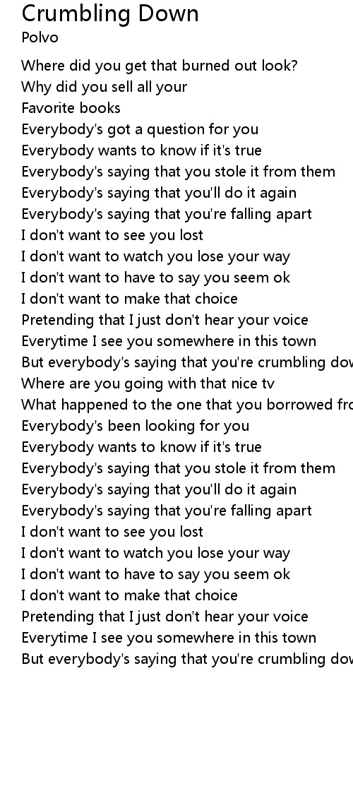 But everybody's saying that you're crumbling down |
