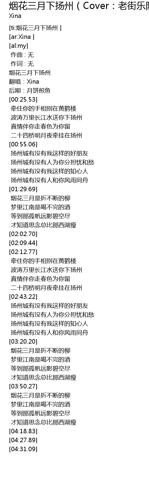 | [01:08.37] | 扬州城有没有人为你分担忧和愁 |