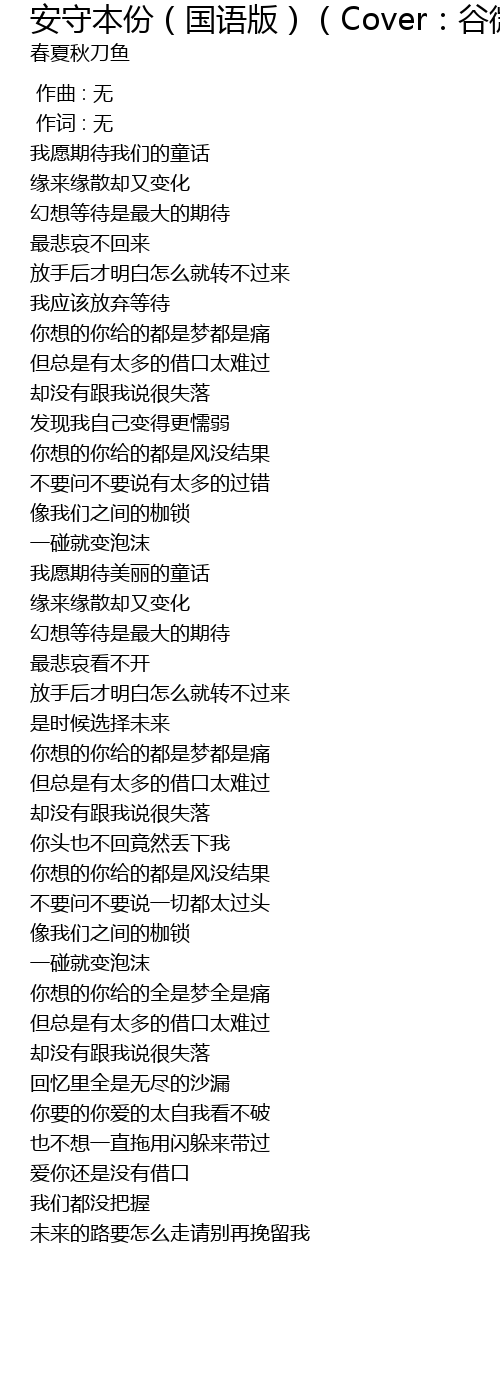 | [01:21.14] | 不要问不要说有太多的过错 |