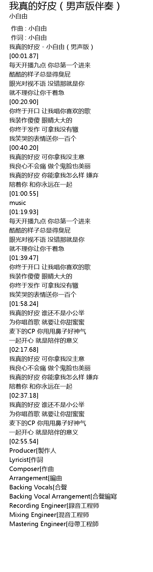 [00:00.62] 我真的好皮 - 小自由(男声版)