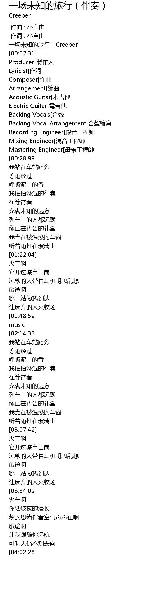 | [00:01.31] | 一场未知的旅行 - Creeper |