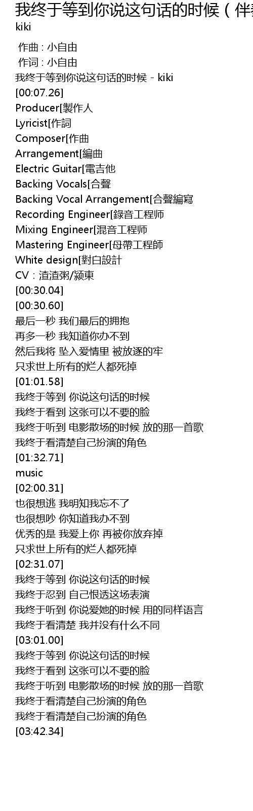 [00:01.06] 我终于等到你说这句话的时候 - kiki
