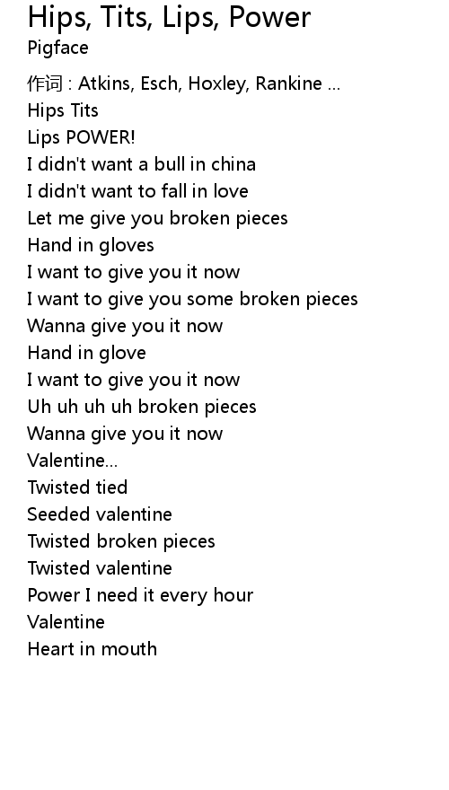 | Song | Hips, Tits, Lips, Power |