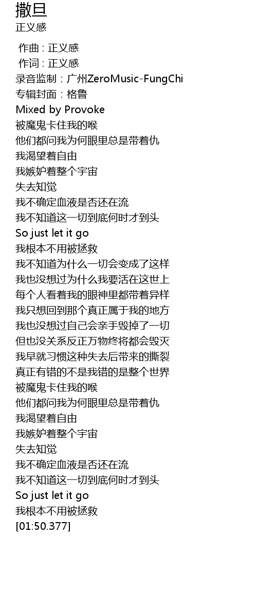 | [01:20.343] | zhēn zhèng yǒu cuò de bú shì wǒ cuò de shì zhěng gè shì jiè |