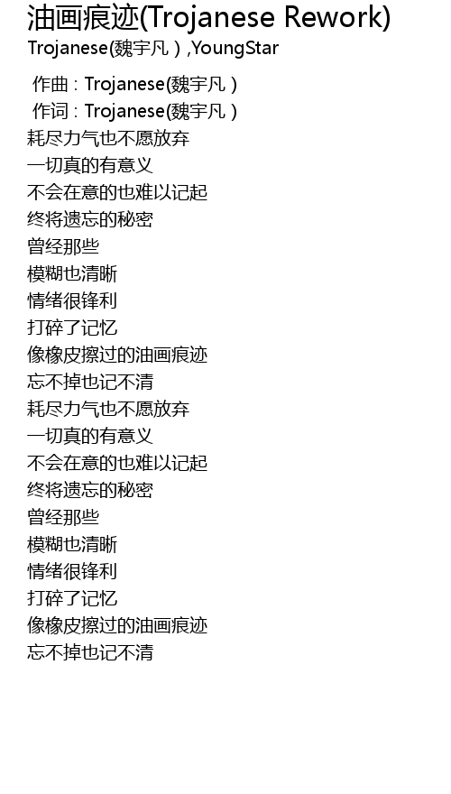 | [00:01.000] | 作词 : Trojanese(魏宇凡) |