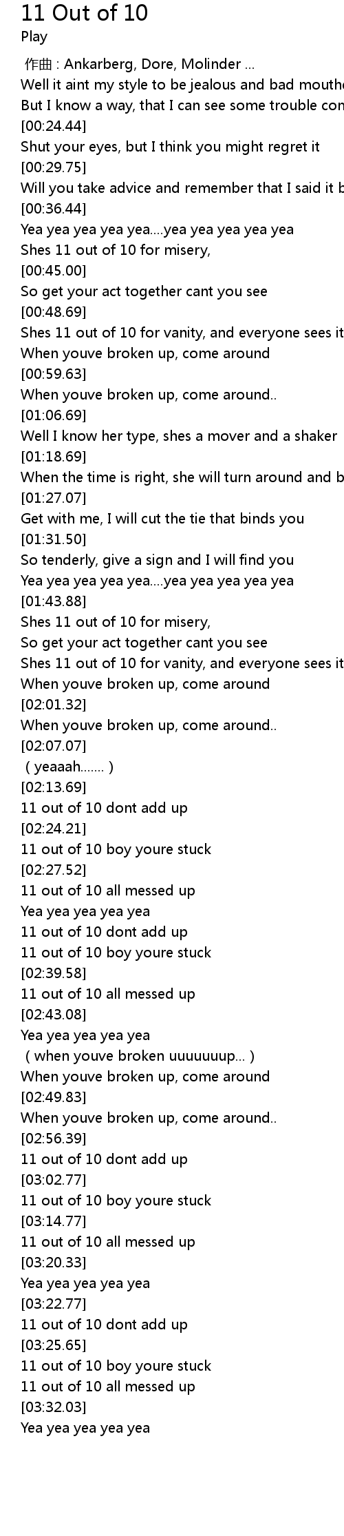 | [02:59.45] | 11 out of 10 dont add up |