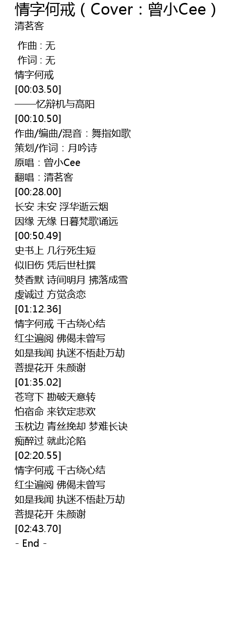| [00:00.00] | 情字何戒 |