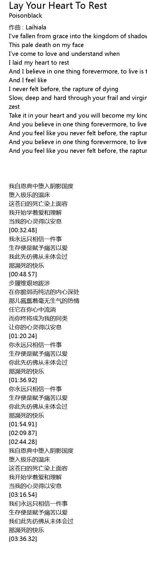 | Take it in your heart and you will become my kind just lay your heart to rest | |