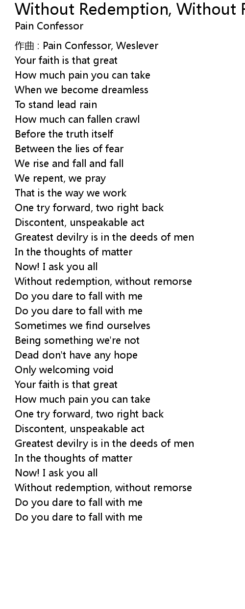 | Without redemption, without remorse | |