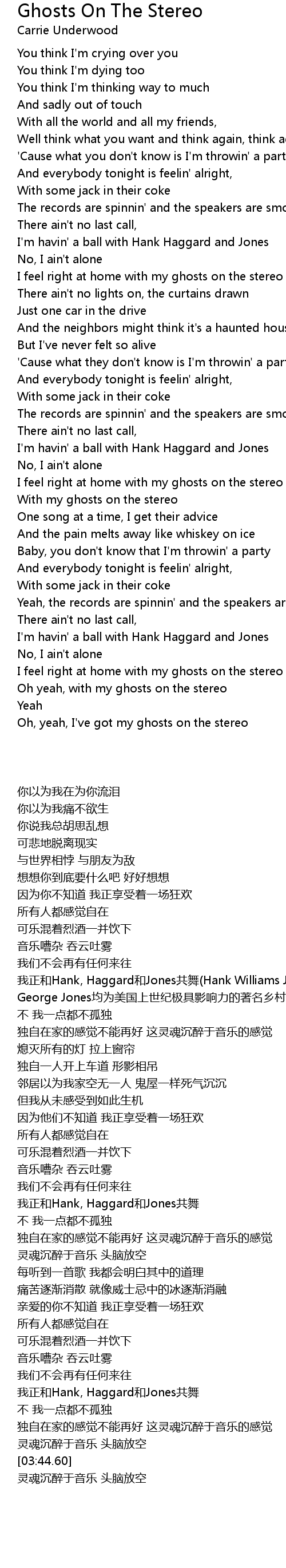 [03:35.49] Oh yeah, with my ghosts on the stereo