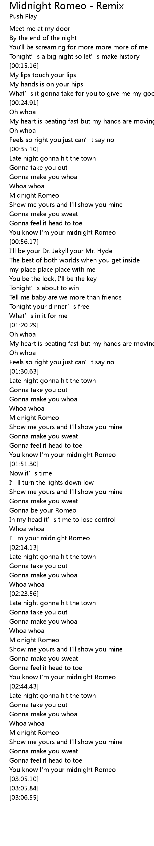 | [00:20.82] | What' s it gonna take for you to give me my goodnight kiss |
