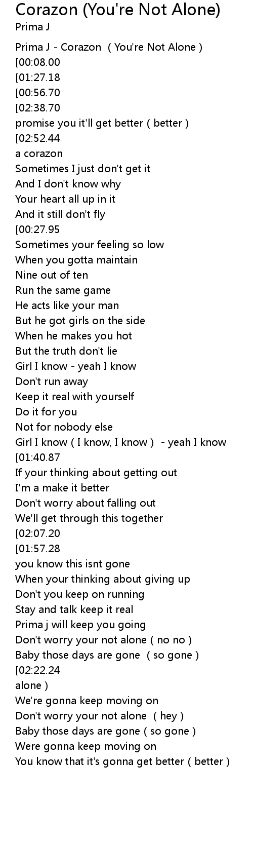 | [00:02.00] | Prima J Corazon You' re Not Alone |