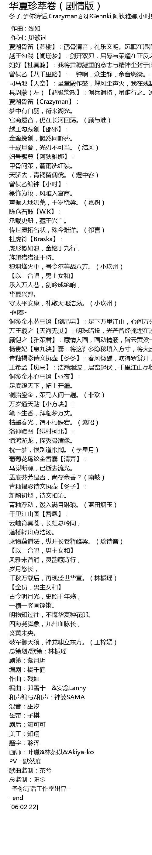 | [05:17.48] | 千秋万载后,再现盛世华章。(林栀瑶) |