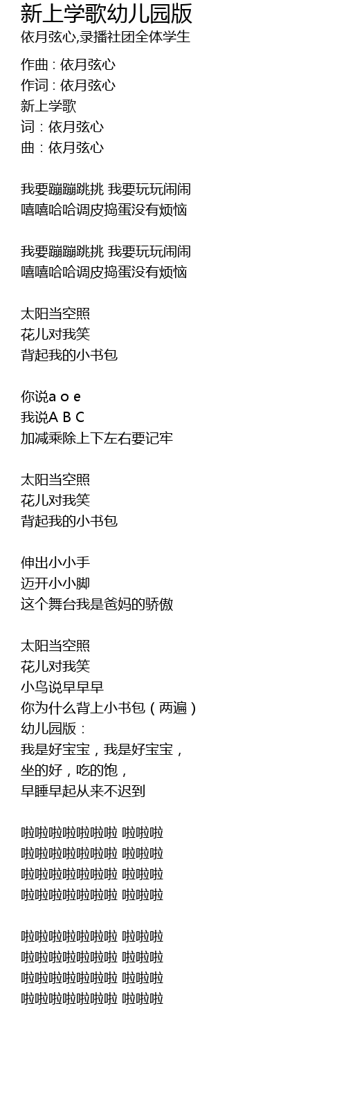 新上学歌幼儿园版 xin shang xue ge you er yuan ban Lyrics