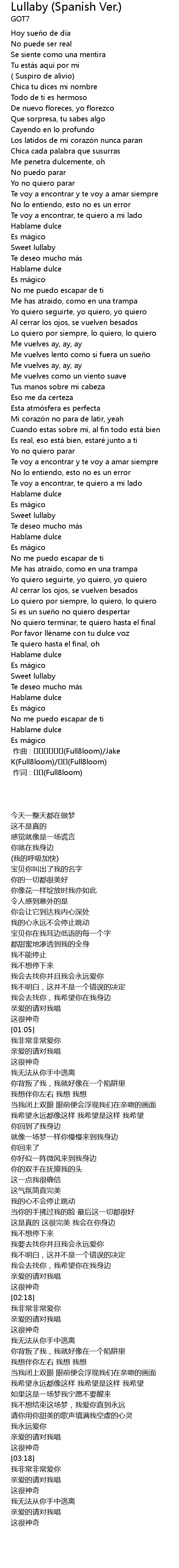 | Song | Lullaby (Spanish Ver.) |