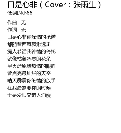 | kǒu shì xīn fēi nǐ shēn qíng de chéng nuò | |
