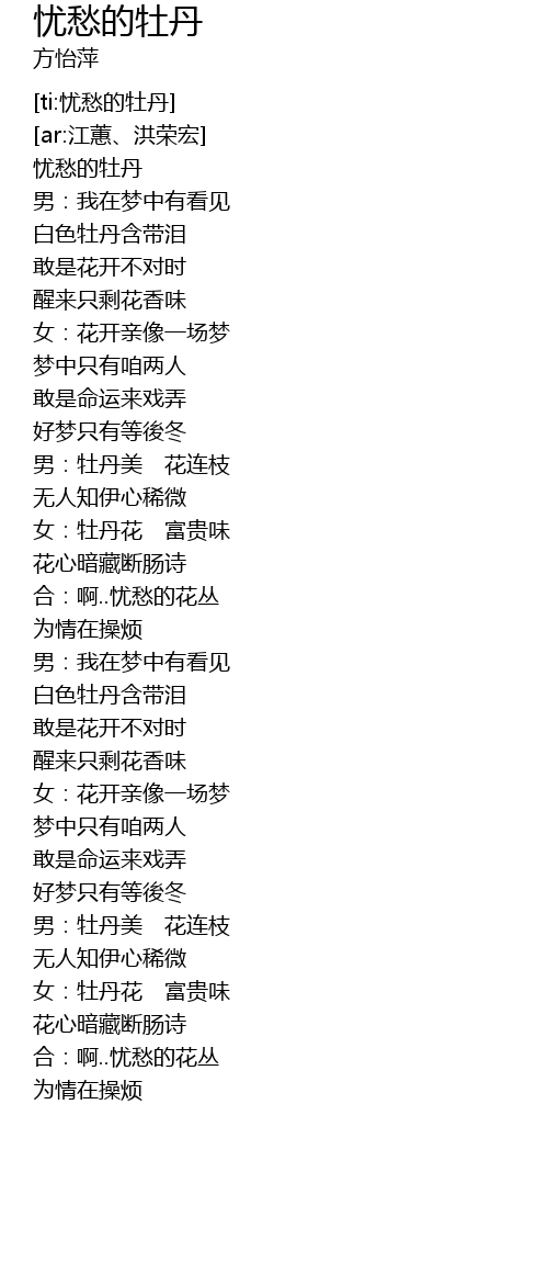 | [03:00.781] | 男:牡丹美 花连枝 |