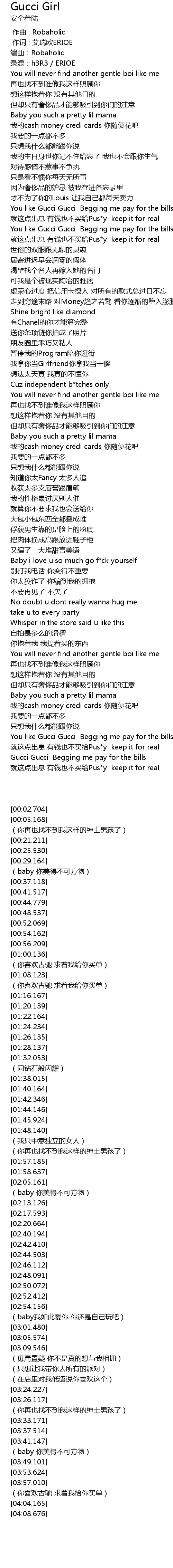 | [04:08.676] | Gucci Gucci Begging me pay for the bills |