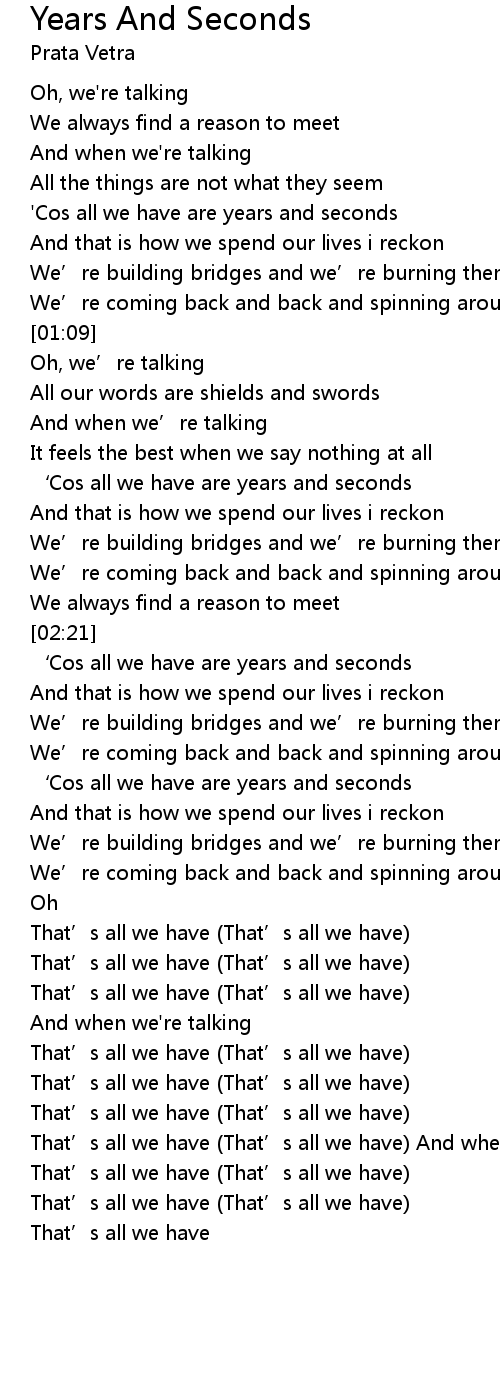 | [00:45] | 'Cos all we have are years and seconds |