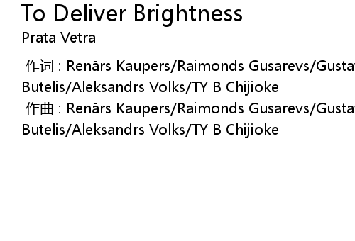 | [00:00.000] | 作词 : Renārs Kaupers/Raimonds Gusarevs/Gustavs Butelis/Aleksandrs Volks/TY B Chijioke |